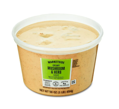 Marketside Creamy Mushroom & Herb Soup is a rich, creamy soup that is packed with mushrooms and carrots seasoned with a tasty blend of spices. This delicious comfort food is crafted with care using only whole ingredients to bring you great tasting flavors. It's great for quick and easy meals at home, school, or the office. Try serving it with a fresh salad, a yummy sandwich, or on its own. This delicious soup comes in a convenient resealable, microwave-safe container that helps to maintain freshness while making it incredibly easy to heat and enjoy. Simply place in the microwave for three to four minutes and you have delicious restaurant-style soup ready to go. Take home the Marketside Creamy Mushroom & Herb Soup today.