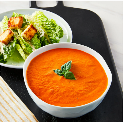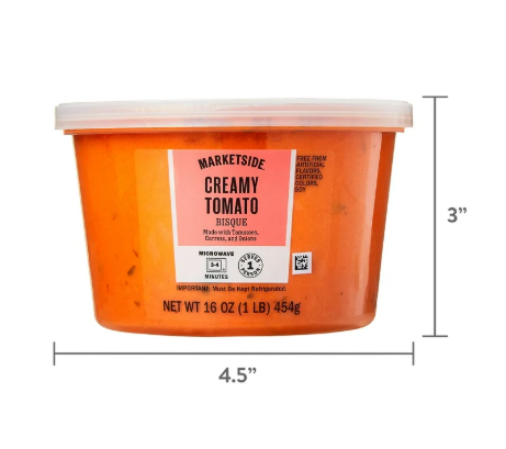 Marketside Creamy Tomato Bisque is smooth and zesty made with ripe organic tomatoes, fresh cream, and sweet basil. Nothing says coziness like a hearty bowl of Marketside Creamy Tomato Bisque. This delicious soup will evoke memories of soup simmering on Grandma’s stove on a cold winter day. This refrigerated soup comes in a microwave-safe plastic cup. Ready to eat in just 3-4 minutes in the microwave, you can have dinner ready in a snap. Serve with a hearty grilled cheese sandwich or some warm cornbread, and you have a complete meal that will warm your tummy in no time. Treat yourself to the warm, wholesome goodness of Marketside Creamy Tomato Bisque today.