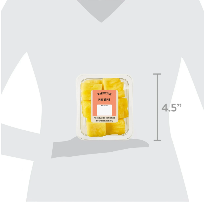 Experience a burst of tropical flavors with these Marketside Pineapple Chunks. The pre-cut chunks of ripe pineapple are juicy and sweet to taste and are packed in its own juice. Carry them with you and eat them straight out of the tray any time you want, at home or on-the-go. You can also use them to top desserts and ice creams, in a fruit salad or blend them with milk to make milkshakes. Add some fresh fruit to your daily menu today with these Marketside Pineapple Chunks. Marketside provides you and your family with high-quality fresh food that saves you time and money, many of which are cooked fresh or prepared in stores. Convenient solutions with value added in every Marketside item.