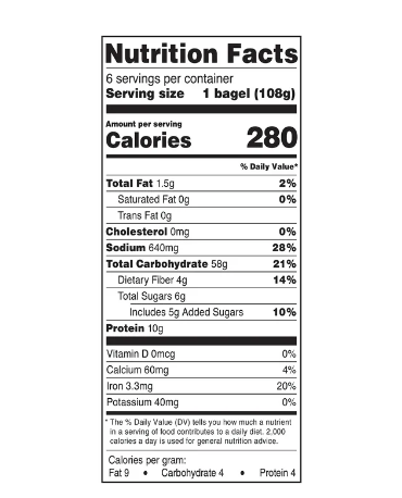 | Serving Size: | 1 bagel (108g) |