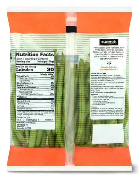 Eating your greens is a pleasure with Marketside Green Beans. These fresh, crisp, juicy green beans are easy to cook to tender-yet-firm perfection, and are ready to be the star of a treasure trove of delicious, wholesome dishes. Opt for a classic presentation with bacon and garlic, season them with lemon and cracked black pepper, or toss them in a wok with a sweet and sour glaze. They're washed and ready to eat, so you can get cooking the minute inspiration hits. Veggies are never boring with Marketside Green Beans.Fresh ideas and quality ingredients, that's how Marketside brings the best foods to your table. We are committed to deliver freshness that you can taste and see. Marketside offers the best in fresh food, guaranteed by Walmart, working in partnership with farmers, bakers and chefs for the highest quality, authentic ingredients and favorite recipes.
