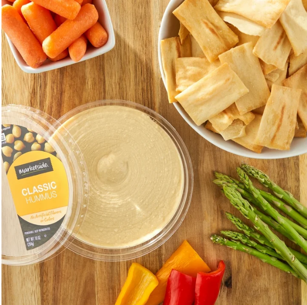 Marketside Gluten-Free, Classic Hummus is a classic favorite traditional hummus offering with golden toasted pine nuts in a perfect herbal dressing. Pair with assorted vegetables and pita chips, Spread on sandwiches, wraps, and flatbreads. Perfect for parties! Cooked. Ready to Eat. Comes in a resealable plastic container with a lid 2 Tbsp. (28g) servings. No preservatives or artificial flavors.