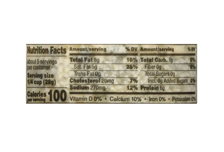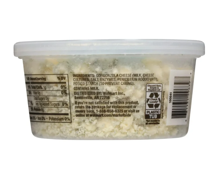Gorgonzola Cheese (Milk, Cheese Cultures, Salt, Enzymes, Penicillium Roqueforti), Potato Starch (to prevent caking)
