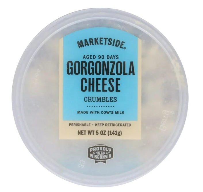 Marketside Gorgonzola Cheese Crumbles are a popular Blue cheese, and is known for its soft, creamy flavor, featuring hints of butter with a pungent finish and a gentle bite. It's a classic topper for salads and traditional star of pasta sauces, but it also adds a sophisticated touch to pizza, casseroles, and soups. Make something delicious with Marketside Gorgonzola Cheese Crumbles.