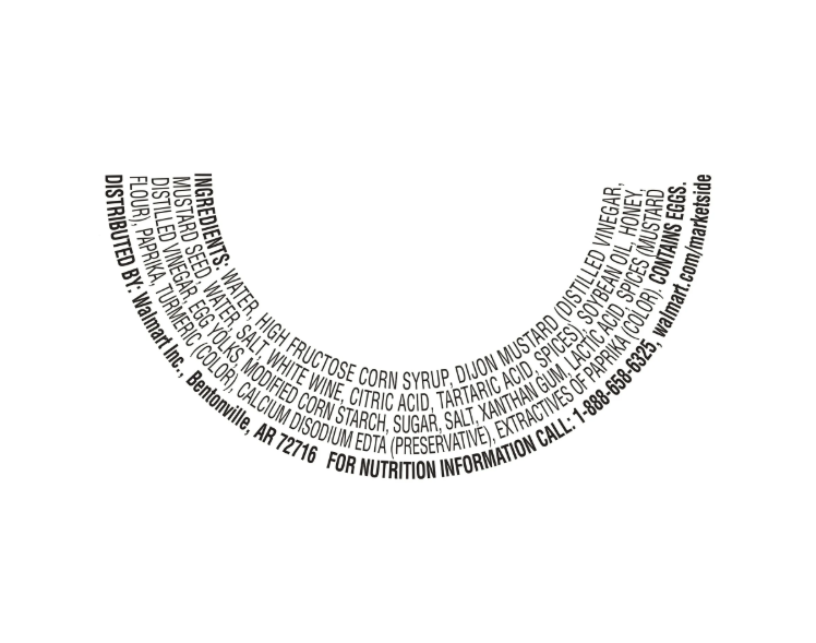 Water, high fructose corn syrup, dijon mustard (distilled vinegar, mustard seed, water, salt, white wine, citric acid, tartaric acid, spices), soybean oil, honey, distilled vinegar, egg yolks, modified corn starch, sugar, salt, xanthan gum, lactic acid, spices (mustard flour), paprika, turmeric (color), calcium disodium EDTA (preservative), extractives of paprika (color).