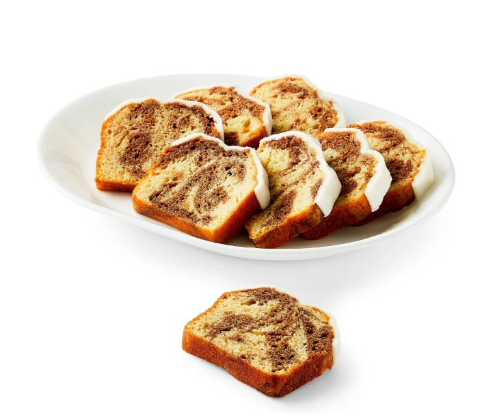 Marketside Iced Cinnamon Sliced Loaf Cakes are the perfect treat for any occasion. This decadent creme cake is baked to perfection using only the best ingredients. Enjoy with coffee, tea, as a grab and go snack, or to complement your favorite ice cream to create the ultimate after dinner dessert for family and guests. Each bite offers a burst of cinnamon flavor. These flavorful Marketside Iced Cinnamon Sliced Cakes come packed in eight individual slices, perfect for sharing.