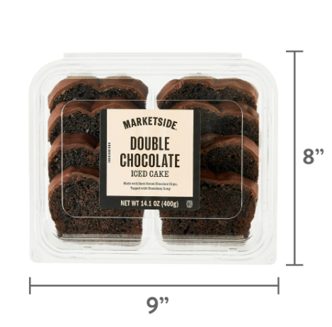 Marketside Iced Double Chocolate Sliced Cakes are perfect for a grab-n-go snack, dessert or to be shared with family and friends. This decadent double chocolate sliced cake is baked to perfection using only the best ingredients. Each bite offers a burst of rich chocolate flavors, that fills that chocolate craving. Warm the double chocolate cake and serve with coffee, tea or your favorite ice cream. This delightful creation is a sweet treat to indulge in on any day. These flavorful Marketside Iced Double Chocolate Sliced Cakes come packed in eight individual slices, perfect for sharing.