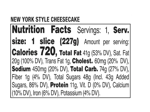 - Marketside New York Style Cheesecake, 8 oz (Refrigerated/Regular)