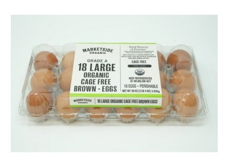Marketside Organic Cage Free Brown Large Eggs, 18 count in the PET Plastic Recyclable carton are from hens that are raised on a certified organic feed. These hens are free to roam, nest and perch in a protected barn with outdoor access. No home chef should be without Marketside Organic Cage Free Brown Large Eggs, 18 Count. Eggs are an excellent source of protein, as well as vitamin B5 and selenium, which are essential for a healthy diet. When you want a quality product at a great price, choose Marketside Organic Cage Free Brown Eggs, Large. Marketside Organic eggs are simple, wholesome and USDA certified eggs. Our Marketside Organic Cage Free Brown Large Eggs are great for breakfast, lunch, dinner and snacks to get a good source of protein.