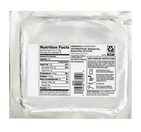 - Marketside Organic Grass-Fed Ground Beef, 85% Lean/15% Fat, 1lb