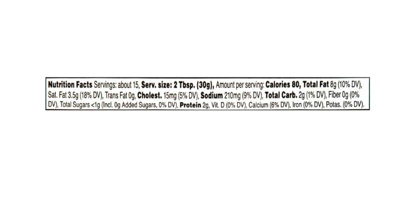 Cream Cheese (Pasteurized Milk and Cream, Cheese Culture, Salt, Carob Bean Gum, Xanthan Gum, Guar Gum), Mayonnaise (Soybean Oil, Water Egg Yolks, Distilled Vinegar, Contains Less than 2%: Salt, Sugar, Corn Syrup, Corn Syrup, Spice, Lemon Juice Concentrate), Spinach, Artichoke Hearts, Water, Salt, Citric Acid [Preservative], Ascorbic Acid [Preservative], Parmesan Cheese [Pasteurized Part-Skim Milk, Cheese Culture, Salt, Enzymes), Low-Mositure Part-Skim, Mozzarella Cheese and Medium Asiago Cheese Blend with Garlic (Low-Moisture Part-Skim Mozzarella Cheese [Pasteurized Part-Skim Milk, Cheese Culture, Salt, Enzymes], Medium Asiago Cheese [Pasteurized Milk, Cheese Culture, salt, Enzymes], Garlic, Natamycin [A Mold Inhibito]), Sour Cream (Cultured Pasteurized Grade A Milk, Cream Nonfat Dry Milk, Gelatin), Salt Sugar, Distiled Vinegar, Lemon Juice Concentrate, Glucono Delta-Lactone, Potassium Sorbate [Preservative], Sodium Benzoate [Preservative], Xanthan Gum, Citric Acid[Preservative].
