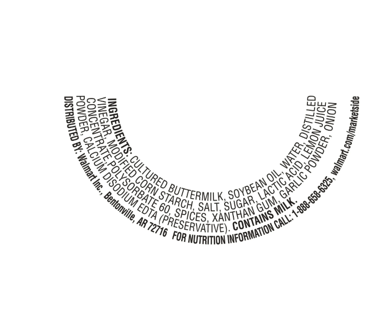 CULTURED BUTTERMILK, SOYBEAN OIL, WATER, DISTILLED VINEGAR, MODIFIED CORN STARCH, SALT, SUGAR, LACTIC ACID, LEMON JUICE CONCENTRATE, POLYSORBATE 60, SPICES, XANTHAN GUM, GARLIC POWDER, ONION POWDER, CALCIUM DISODIUM EDTA (PRESERVATIVE).