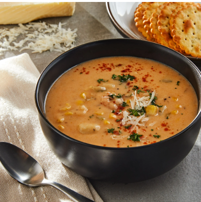 The foundation of our hand-crafted Marketside Shrimp and Corn Chowder is a creamy roux-thickened shrimp broth with Yukon potatoes and fresh, hormone-free cream. We add generous amounts of tender sweet corn, roasted and diced green peppers and finish with a blend of Cajun spices including oregano and sweet smoked paprika. This shrimp and corn chowder will make you feel like you’re eating at a seaside cafe and can smell the salt air. It's convenient and family friendly in a 16-ounce plastic container that is ready to heat and serve in just three to four minutes in the microwave (stirring halfway through). The chowder is great on its own, garnished with oyster crackers, or served with a side salad. And of course, all our shrimp is ethically harvested, and all of our seafood suppliers adhere to the highest level of environmental standards. But hurry, this kettle cooked Marketside favorite will be available for a limited time only. Bring home the Marketside Shrimp and Corn Chowder today.