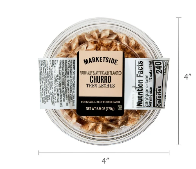 Indulge in a sweet and irresistible treat with the Marketside Single-Serve Churro Tres Leches Parfait. This delectable dessert features a churro-style cake that has been soaked in a sweet tres leches mixture, offering a rich, creamy taste that's hard to resist. The cake is beautifully topped with a churro-style icing, adding an extra layer of sweetness and texture. This single-serve parfait is perfect for on-the-go snacks, work lunches, or a decadent after-dinner treat. It's conveniently packaged, refrigerated and ready to eat, making it the perfect choice for those busy days when you need a quick and satisfying sweet fix. Enjoy the luxurious taste of a bakery-style dessert with the Marketside Single-Serve Churro Tres Leches Parfait.