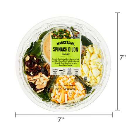 When you want to enjoy a quick and easy salad, grab one of these Marketside Spinach Dijon Salad bowls. The Spinach Dijon salad bowl includes spinach, hard cooked eggs, Monterey Jack and Colby cheese blend, crispy chow mein noodles, dried cranberries, and almonds, all ready to be tossed in the included sweet onion dijon dressing. This Spinach Dijon Salad is ideal for a light lunch or dinner. The convenient single serving bowl is a good source of protein, calcium, iron, and potassium. The salad is easy to toss in the recyclable plastic bowl it comes in and is an easy favorite to round out any lunch or dinner. Bring home a Marketside Spinach Dijon Salad bowl tonight.