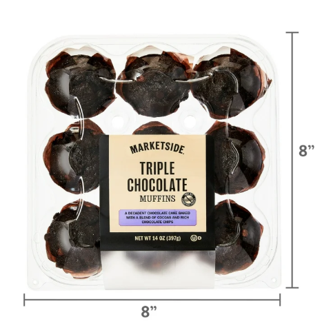 The Marketside Triple Chocolate Baked Muffins are a decadent indulgence crafted for true chocolate lovers. Each muffin is baked with a rich blend of cocoas that creates a deep, velvety flavor, while generous amounts of chocolate chips are folded into the batter for bursts of sweetness in every bite. Moist, tender, and irresistibly chocolaty, these muffins are perfect for breakfast, dessert, or an afternoon treat. With nine muffins in each pack, they are ideal for sharing with family and friends or savoring on your own when cravings strike. The Marketside Triple Chocolate Baked Muffins bring the taste of a bakery favorite straight to your home with indulgent chocolate flavor in every bite.