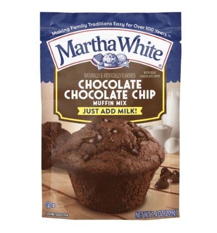 Easily prepare delicious chocolate muffins with Martha White Chocolate Chocolate Chip Muffin Mix. Made with delicious flavors of chocolate and real chocolate chips, this muffin mix offers an easy way to enjoy fresh-baked muffins any time of the day for family breakfasts and snacks. Martha White muffin mixes contain all the dry ingredients you need to make delectable breakfast muffins at home. Just add milk to this Martha White muffin mix, stir and bake as directed for easy and delicious muffins in just 15 minutes. Each bag of muffin mix makes 6 muffins or 18 mini muffins. Make baked goods you can enjoy right away or freeze for easy breakfasts or snacks in the future. Serve the chocolate chocolate chip muffins with scrambled eggs and fruit for a quick breakfast, or stir in some add-ins like white chocolate chips or walnuts to create your own tasty recipes. This 7.4 oz bag of Martha White Chocolate Chocolate Chip Muffin Mix is ideal for bringing delicious southern taste to weeknight dinners or breakfasts. Making Family Traditions Easy for Over 100 Years.