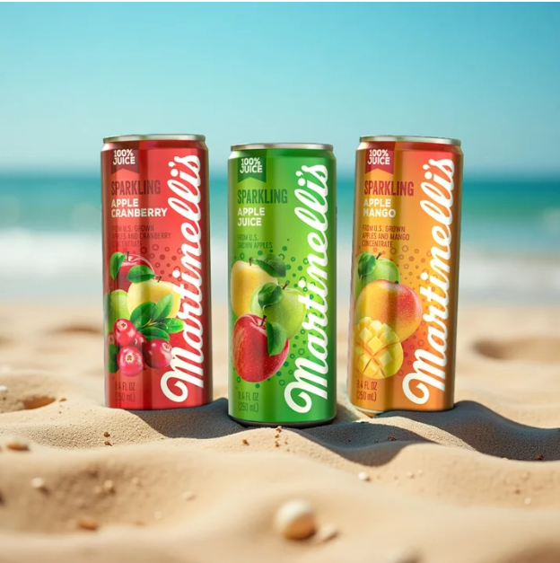 8.4 fluid ounce cans of non-alcoholic sparkling apple mango juice
