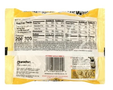 Maruchan Ramen Noodle Creamy Chicken Flavor Soup, 3 oz Shelf Stable Package. America's finest Ramen Noodle soups. Ready-to-Cook and eat as a snack or add meat and veggies to make this a complete meal. This is a great item you can cook for a fast and convenient lunch or dinner as well eat on the go. It can be enjoyed by itself or be used to add more flavor to a variety of side dishes. Please follow package cooking instructions for best results. Contain wheat, soy, and milk ingredients. Manufactured in a facility that also processes crustacean shellfish and sesame products. Maruchan strives to provide quality that will enhance the lives of our customers with better products and services. With an endless effort in product development and customer service, we pursue the health and happiness of our customers and bring Smiles to all around the world.