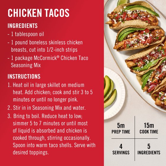 McCormick Chicken Taco Seasoning Mix, 1.0 oz Packet