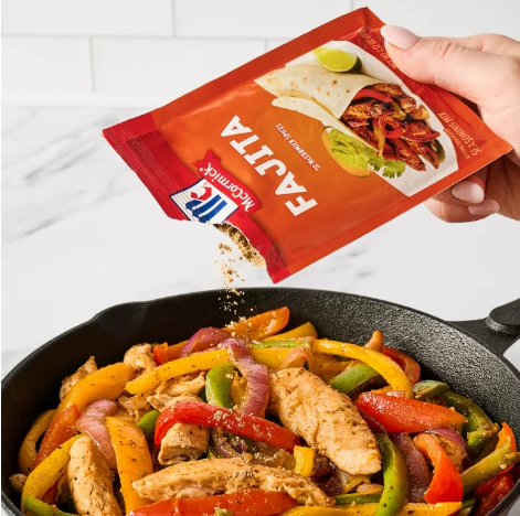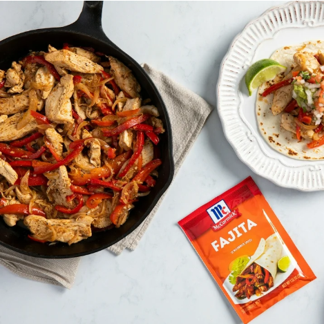 McCormick Fajita Seasoning Mix, 1.12 oz Envelope. For easy, restaurant-style fajitas at home, reach for McCormick Fajitas Seasoning Mix. A vibrant combination of cumin, chili peppers, garlic, and a hint of lime juice, it infuses steak, chicken, and veggies with southwestern-inspired flavor in minutes. Whether you're looking for a family-friendly meal or dining solo, this convenient seasoning mix is the solution. Combine one packet with one pound of meat and prepare on the stovetop. From there you can fill warm tortillas for chicken fajitas, beef fajitas, or even shrimp fajitas, and top with everything from shredded lettuce to guacamole, avocado slices, chopped tomatoes, sour cream, and salsa. Or use prepared fajita meat to prepare nachos or quesadillas for a fun twist. Welcome to the world of McCormick spices! From sweet to savory to spicy, we have all the flavors you need to elevate your next meal. With our wide variety of flavors to explore, your next favorite spice is always just around the corner. This McCormick Fajita Seasoning Mix is in a Paper packet that is 1.12 ounces. Store this shelf-stable item at an ambient temperature.