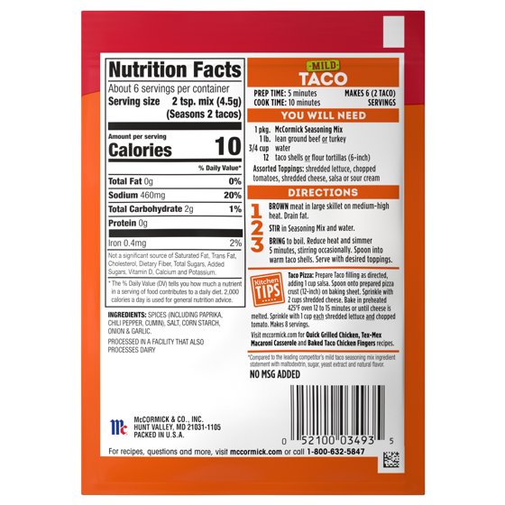 McCormick Mild Taco Seasoning Mix, 1.0 oz Packet