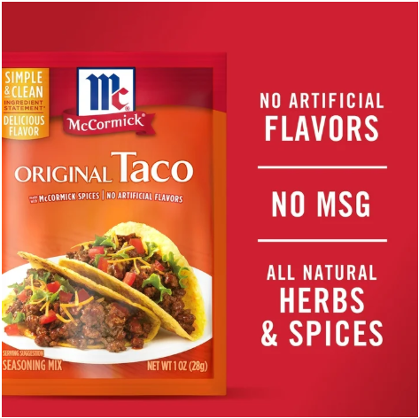 SIMPLE & CLEAN INGREDIENT STATEMENT: McCormick taco seasoning mix is made with trusted, quality flavor, no MSG added, no dairy ingredients, and no artificial flavors.