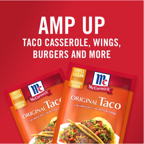 SIGNATURE TACO FLAVOR: Made with McCormick spices and seasonings including onion, garlic, chili pepper, and oregano for adding south-of-the-border zip to tacos and your favorite foods.