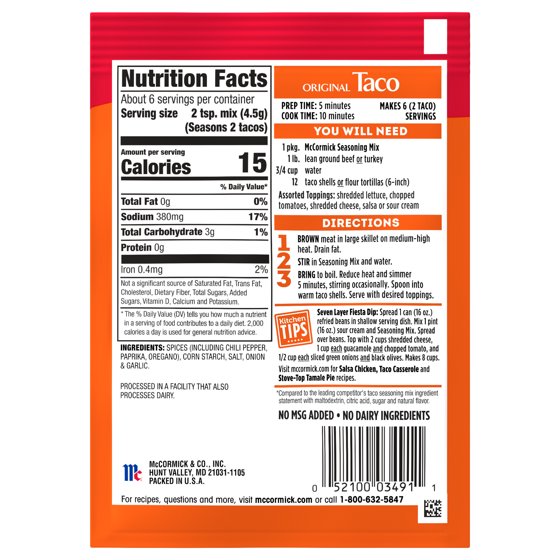 McCormick Original Taco Seasoning Mix, 1.0 oz Packet