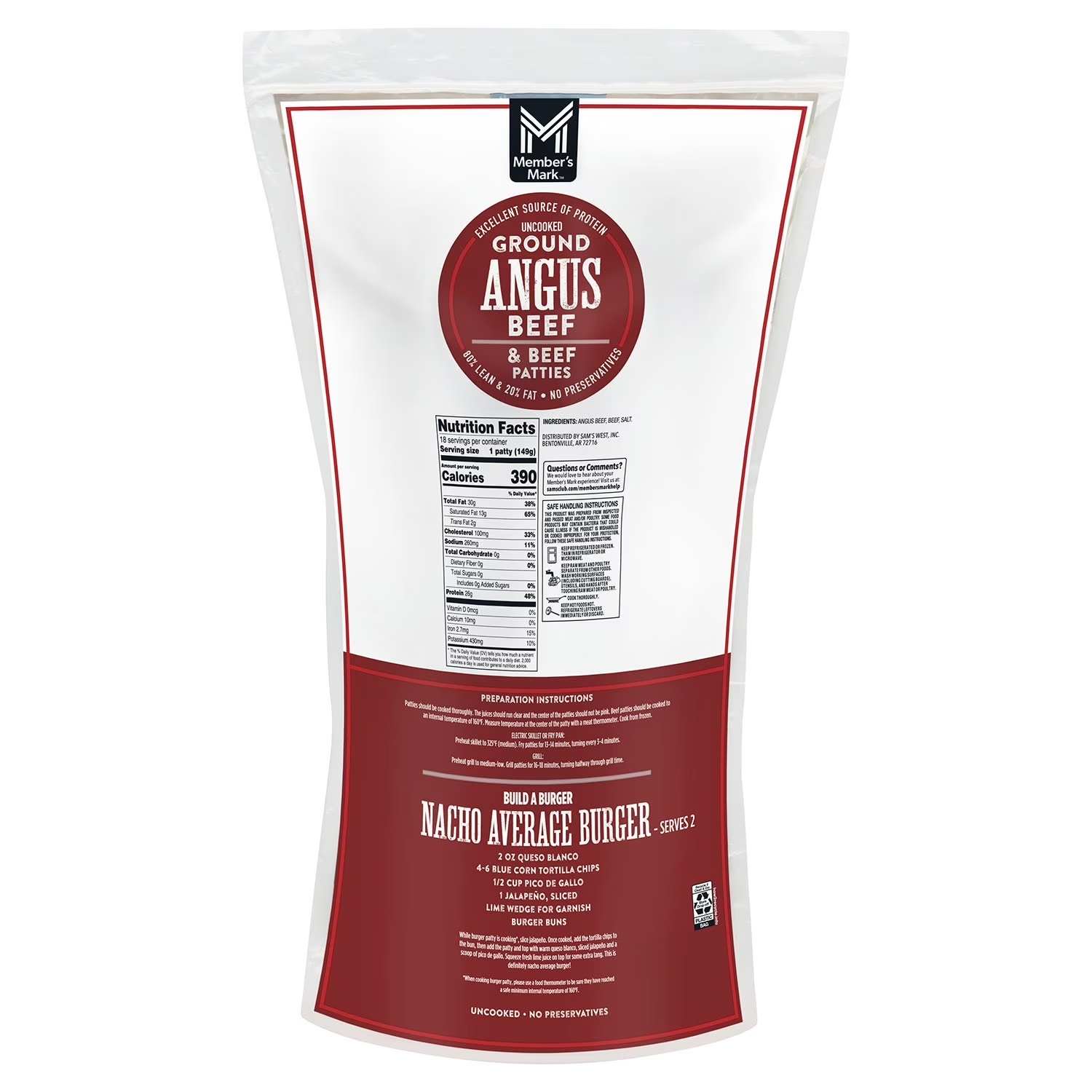 Member's Mark 80/20 Ground Angus Beef Patties, Frozen, 1/3 lb., 18 ct.