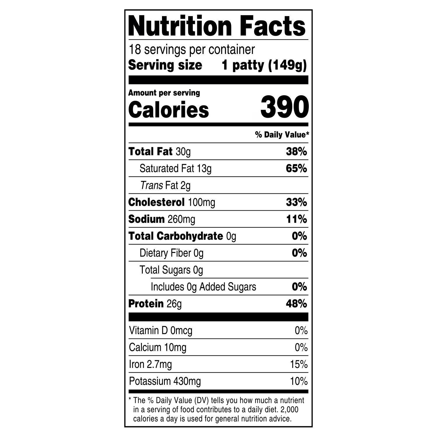 Despite being flavorful and delicious, these tender Angus beef patties also contain a variety of healthy ingredients. Made with 80% lean meat, these patties are a good source of protein. With 26g of protein and a bit of iron in each serving, these Angus burger patties make it easier for you to reach your daily nutritional requirements.