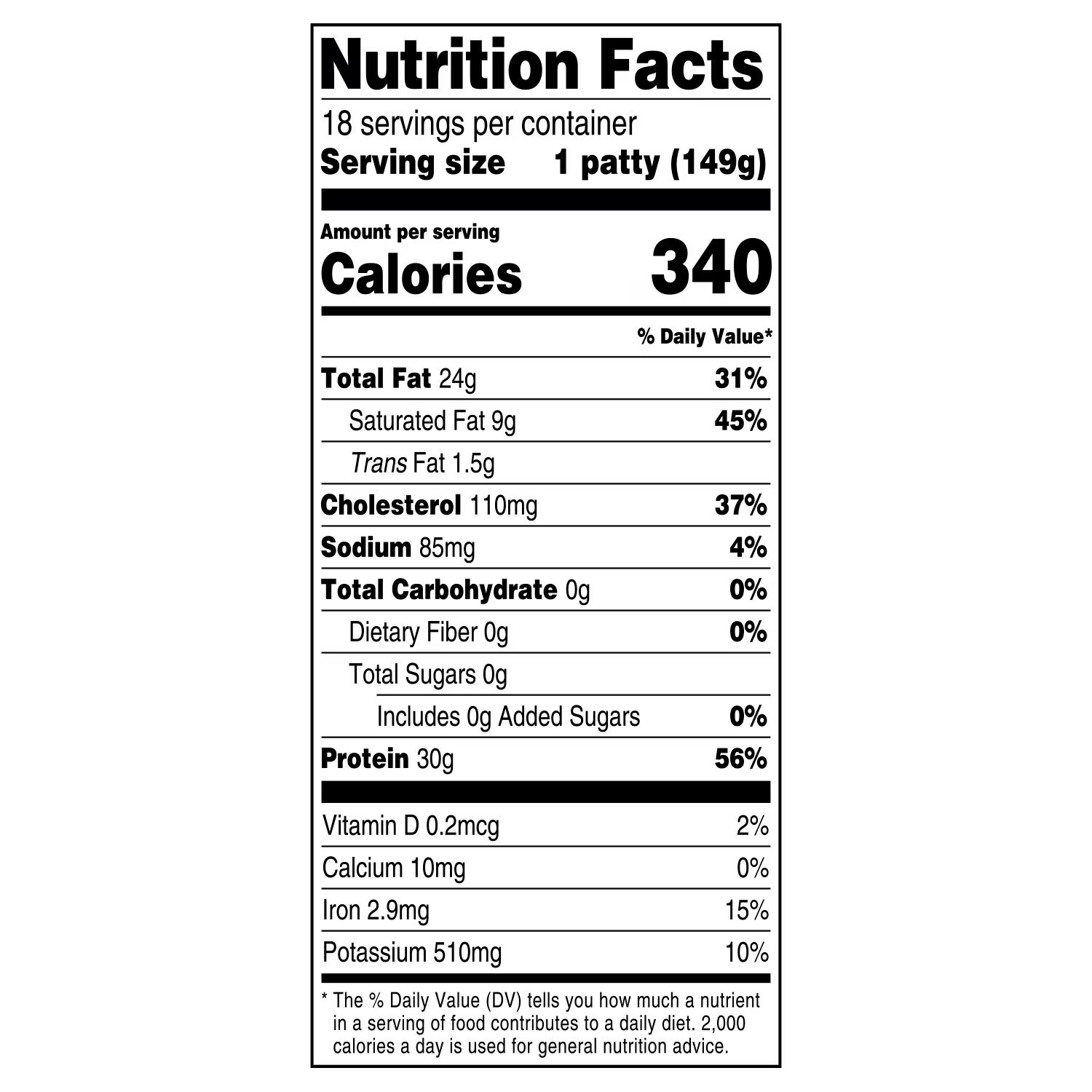 - Quantity: 18 ct. (1/3 lb. patties)