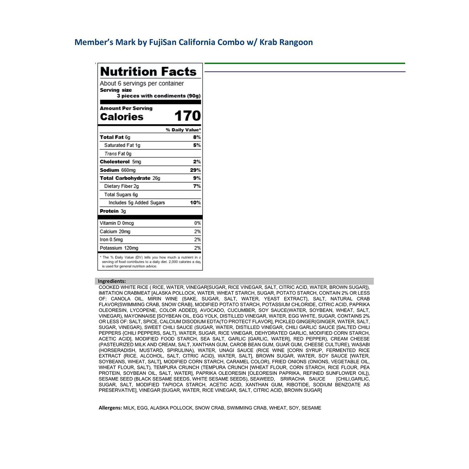 Member's Mark by FujiSan California Combo with Krab Rangoon, 20 pcs.