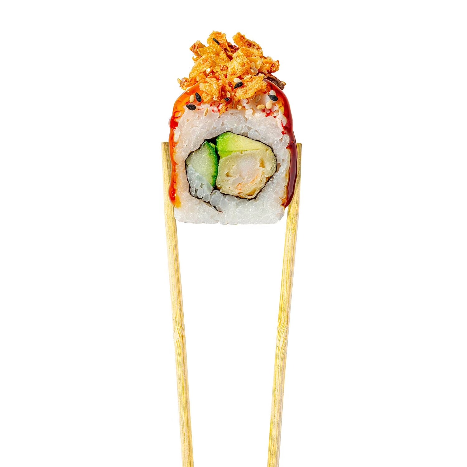 Cooked White Rice (Rice, Water, Vinegar [Sugar, Water, Rice Vinegar, Salt, Citric Acid, Brown Sugar]), Shrimp Tempura (Farm Raised Vannamei Shrimp, Soybean Oil, Unbleached Wheat Flour, Modified Stugar, Potato Starch, Contain 2% Or Less Of: Canola Oil, Mirin Wine {Sake, Arch, Salt, Safflower Oil, Starch, Baking Powder, Soybean Protein, Soybean Powder, Riboflavin, Paprika Color, Mixed Tocopherols), Surimi Mix (Imitation Crabmeat [Alaska Pollock, Water, Wheat Starch, S Sugar, Salt, Water, Yeast Extract}, Salt, Natural Crab Flavor{Swimming Crab, Snow Crab}, Modified Potato Starch, Potassium Chloride, Citric Acid, Paprika Oleoresin, Lycopene, Color Added], Mayonnaise [Soybean Oil, Egg Yolk, Distilled Vinegar, Water, Egg White, Sugar, Contains 2% Or Less Of: Salt, Spice, Calcium Disodium Edta(To Protect Flavor]), Avocado, Cucumber, Unagi Sauce (Rice Wine [Corn Syrup, Fermented Rice Extract {Rice, Alcohol, Salt, Citric Acid}, Water, Salt], Brown Sugar, Water, Soy Sauce [Water, Soybeans, Wheat, Salt], Modified Corn Starch, Caramel Color), Soy Sauce(Water, Soybean, Wheat, Salt, Vinegar), Wasabi Mix (Wasabi [Horseradish, Mustard, Spirulina], Water), Fried Onions (Onions, Vegetable Oil, Wheat Flour, Salt), Pickled Ginger(Ginger, Water, Salt, Sugar, Vinegar), Sesame Seed, Seaweed.
