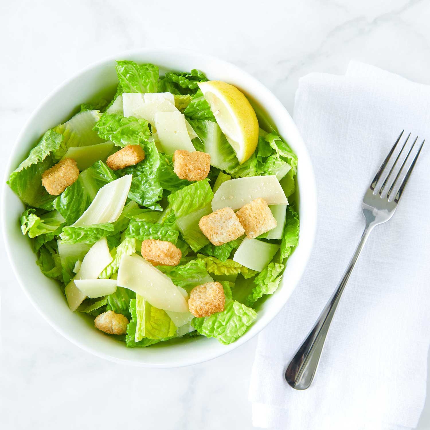- Crisp romaine lettuce, coutons, parmesan cheese, lemon wedges and creamy caesar dressing