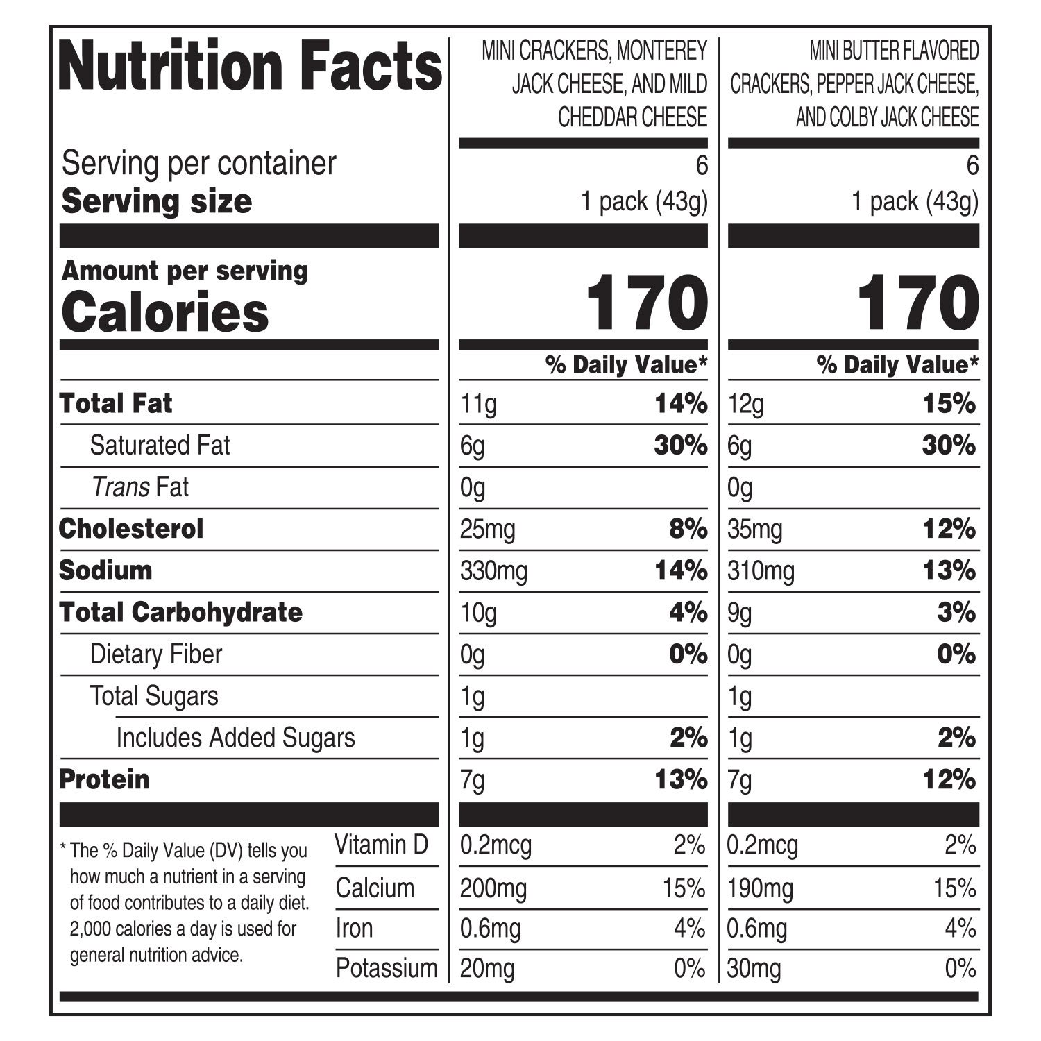 - 6 x Mini Butter Flavored Crackers, Pepperjack Cheese, and Colby Jack Cheese