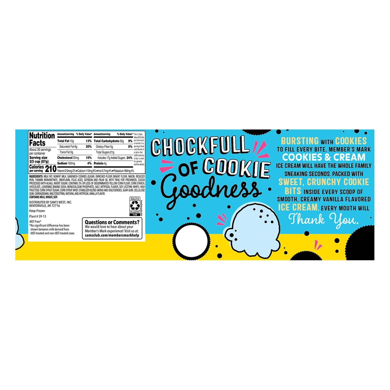 Dessert never tasted so good. This super-special, only-at-Sam’s Club, chockfull-of-cookies recipe starts with our velvety-smooth vanilla flavored ice cream and then gets next-level with chocolate cream cookie pieces.