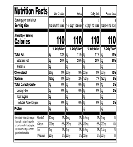 - 8 servings of each cheese