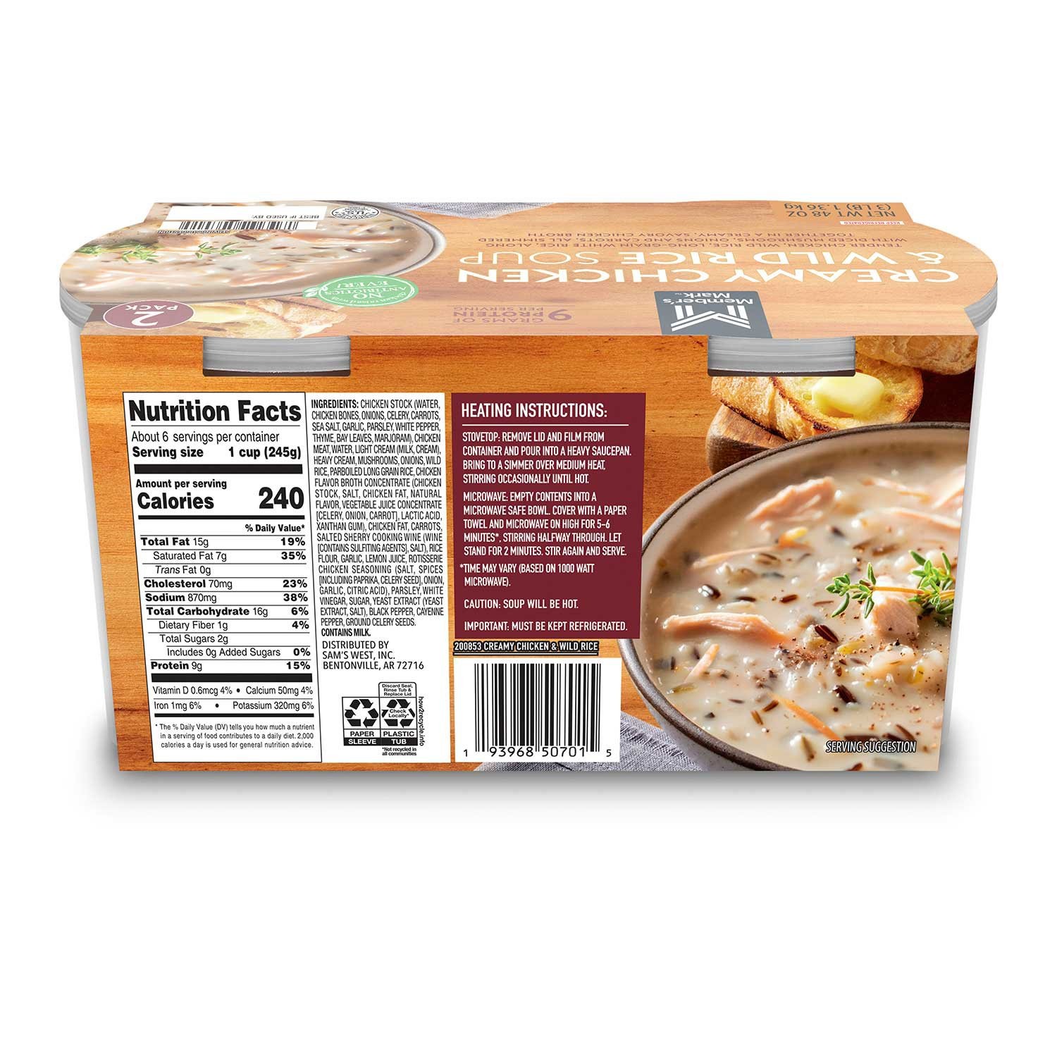 Members Mark Creamy Chicken and Wild Rice Soup, 24. oz. Each, 2 pk.