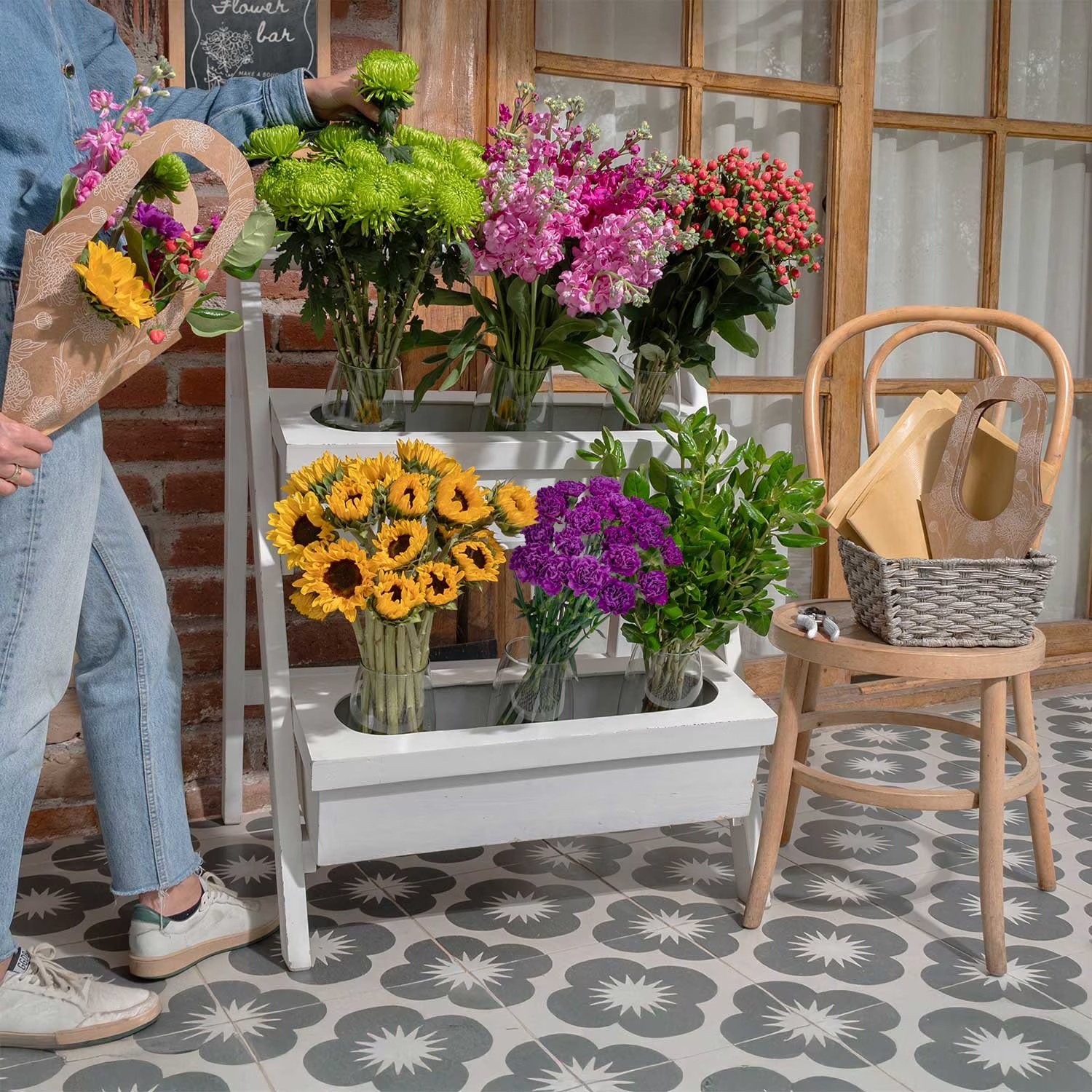 Each bundle is thoughtfully curated to provide everything needed to create 12 custom bouquets, complete with bouquet instructions, floral wraps, and grab-and-go bags.