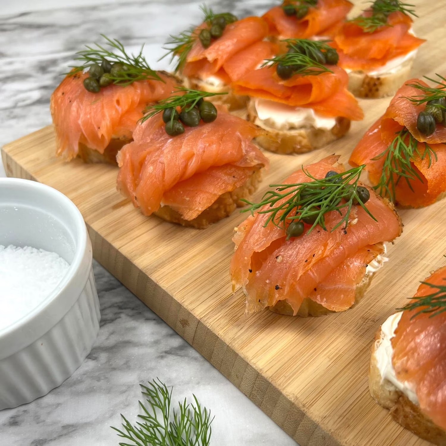 Enjoy Member's Mark Farm Raised Flame Roasted and Smoked Salmon Slices, 10 oz. in a variety of ways. Layer it on a bagel with cream cheese or pair it with dark bread, cream cheese, and dill for a classic combination. For parties, serve it on crackers with crème fraiche or sour cream, topped with salmon roe for an elegant touch. Create a flavorful dip by mixing sour cream, mayonnaise, salt, and dill, then folding in bits of salmon. Present it alongside endive leaves, breadsticks, baby carrots, or snap peas for a stunning platter.