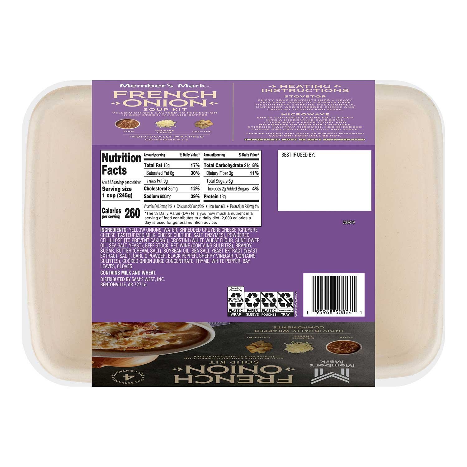 Member's Mark French Onion Soup brings the indulgent flavors of your favorite restaurant to your home. This gourmet soup features naturally sweet onions perfectly balanced with a deeply flavorful beef broth, creating a rich and satisfying base for every bite.