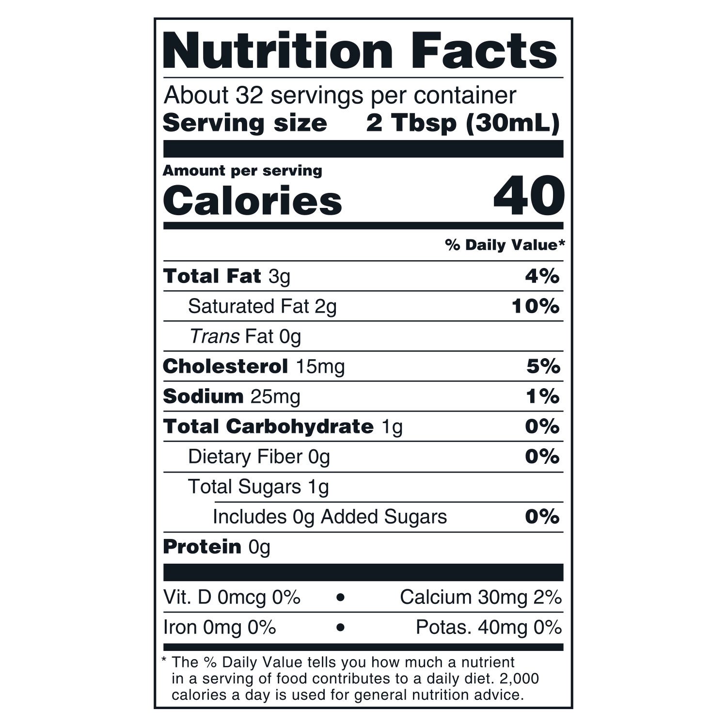 • Serving size aproximate 2 tbsp.
