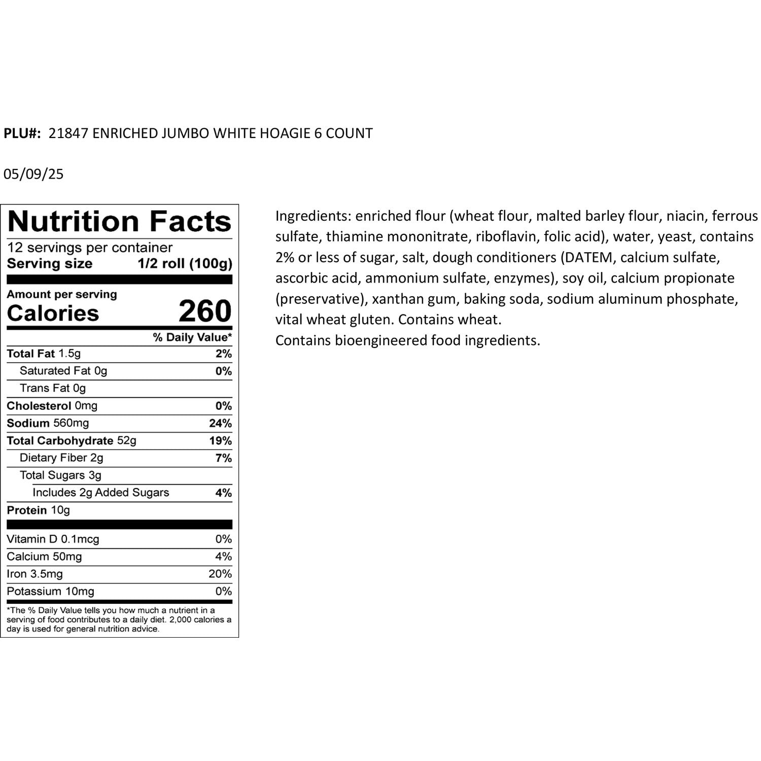 Each pack contains 6 jumbo white bread hoagie rolls, making it easy to feed a group or stock up for your foodservice operation. Whether you're hosting a gathering or running a sandwich shop, these rolls are a reliable option for delicious meals. Pick up a pack today and elevate your sandwich game!