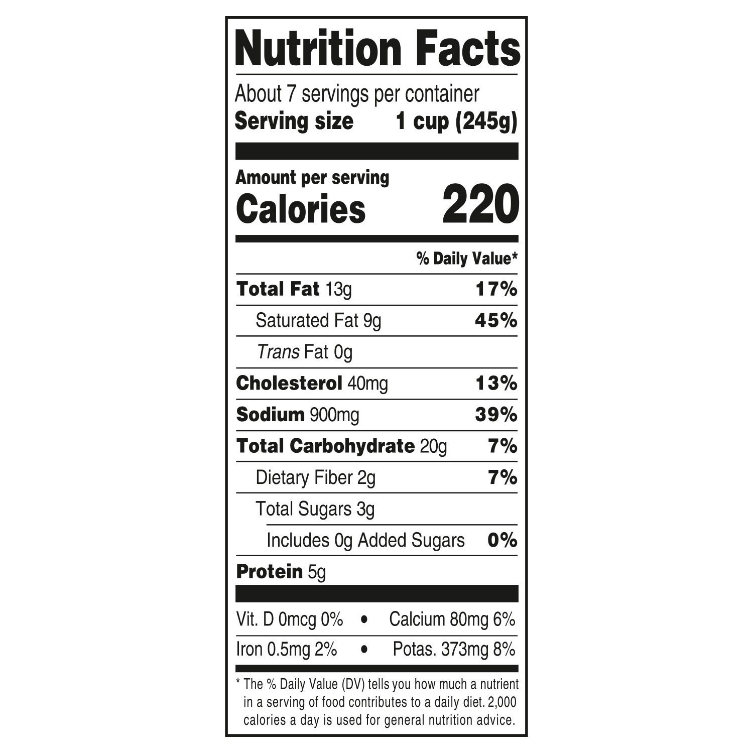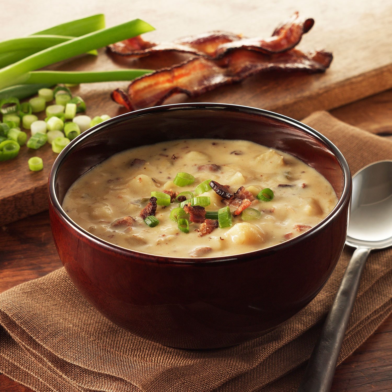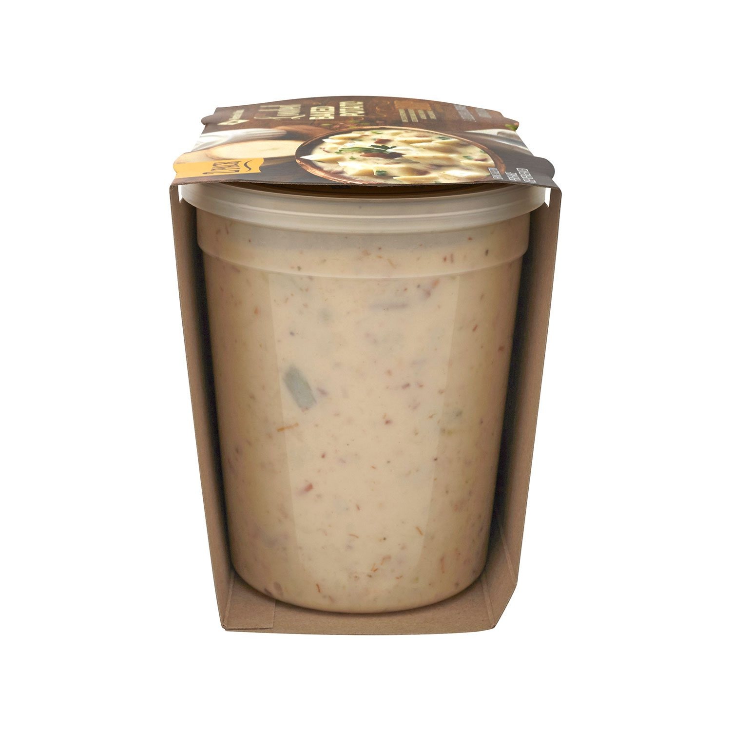 Water, Potatoes, Whole Milk (Milk, Vitamin D3), Onions, Heavy Cream (Cream, Cheese (Cultured Milk And Cream, Salt, Guar Gum, Carob Bean Gum), Butter (Cream, Salt), Uncured Bacon (Pork, Water, Sea Salt, Dried Vinegar, Sugar. May Also Contain Lemon Juice Concentrate, Natural Flavor, Salt, Celery Powder), ), Corn Starch, Rice Flour, Grated Parmesan Cheese (Pasteurized Milk, Cheese Cultures, Salt, Enzymes), Green Onion, Sea Salt, Yeast Extract (Yeast Extract, Salt), Chives, Pepper Sauce (Distilled Vinegar, Red Pepper, Salt), Hickory Seasoning (Water, Natural Hickory Smoke Concentrate), Nisin Preparation Blend (Nisin Preparation Preservative Salt).