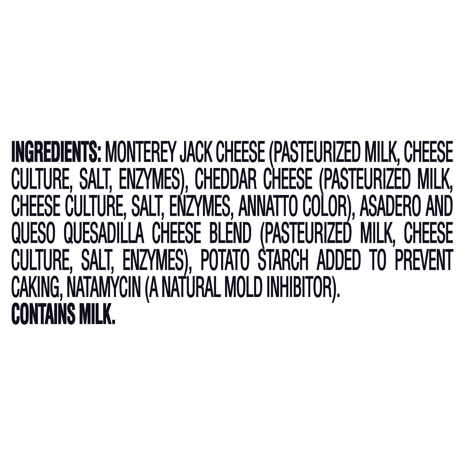 - Finely shredded blend of Monterey Jack, Cheddar, Queso Quesadilla and Asadero Cheeses