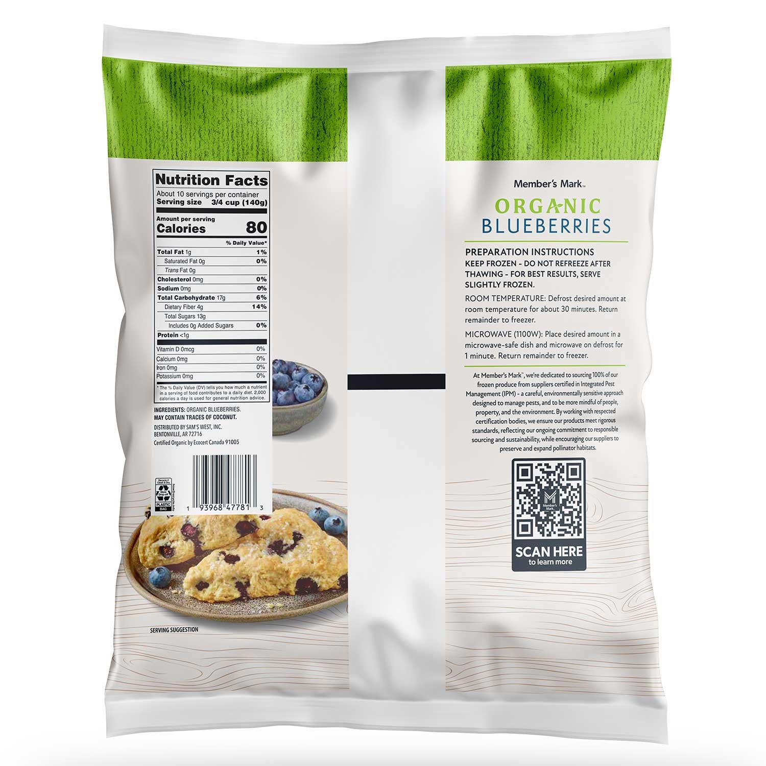 Members Mark Organic Cultivated Blueberries, Frozen, 3 lbs.