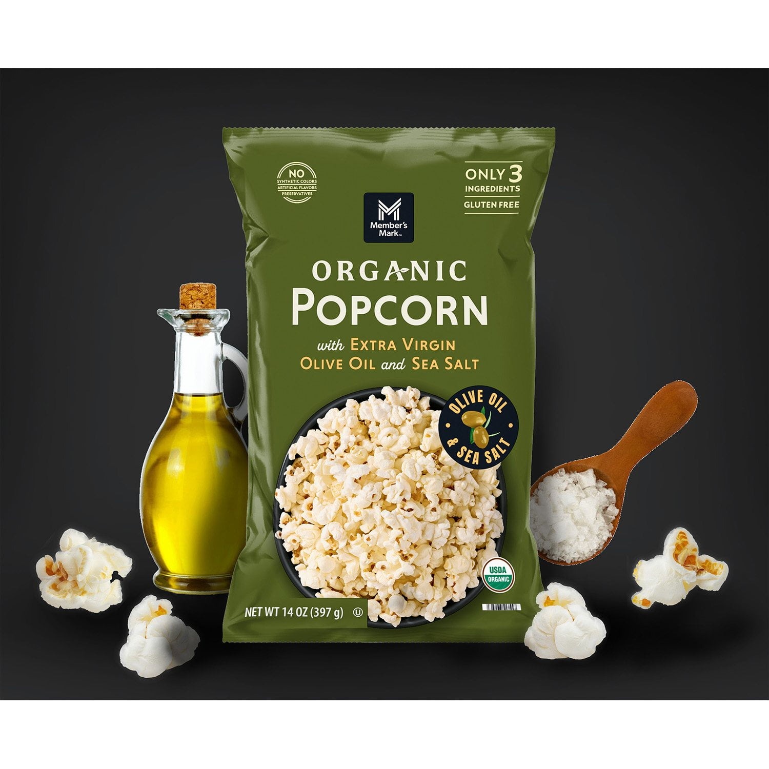 Member's Mark Organic Sea Salt Popcorn with Extra Virgin Olive Oil, 14 oz.