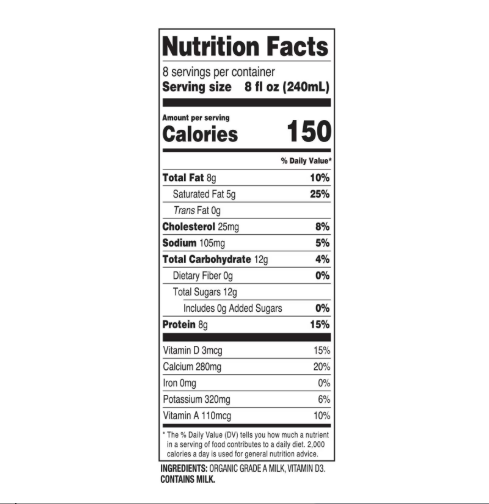organic grade A milk, vitamin D3