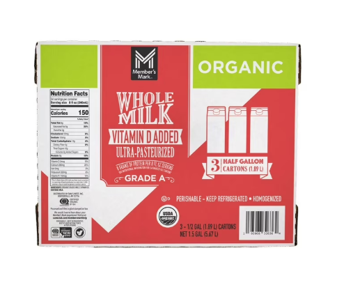 Member’s Mark Organic Whole Milk, 64 fl. oz., 3pk.